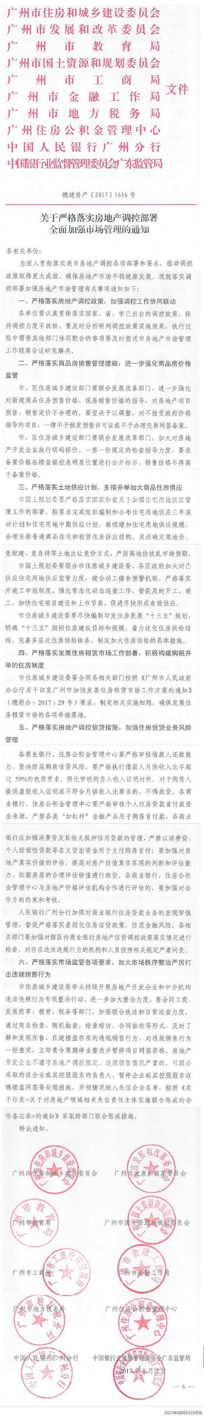 2017年8月2日,广州市住建委、发改委、教育局、国土委、工商局等十部门联合发布《